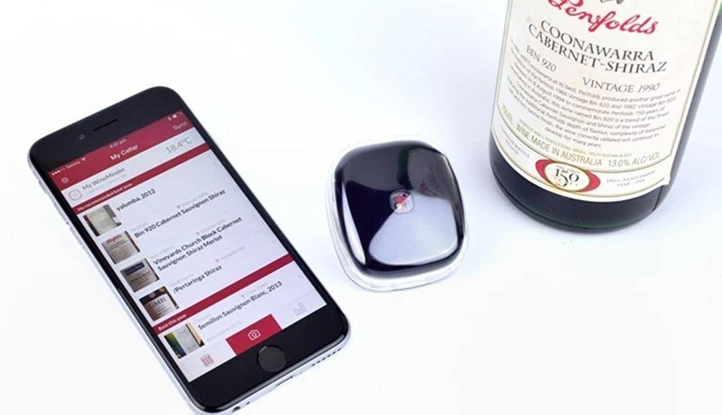 Wineminder sensor and app. Photo: Wineminder Kickstarter