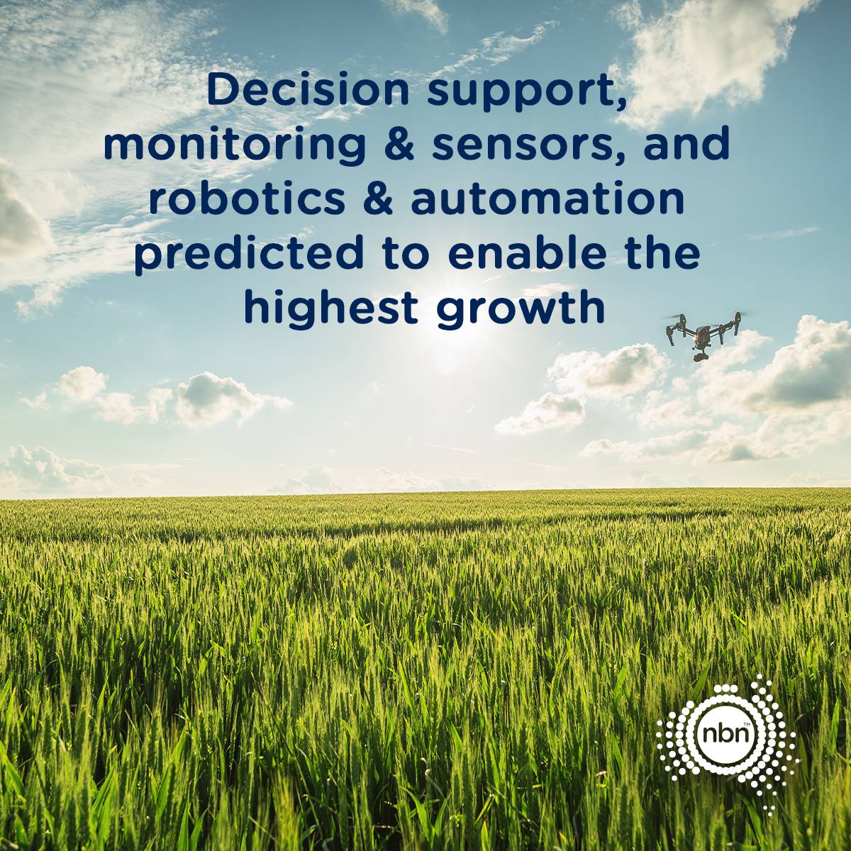 ˆThe Connecting Australia report on agriculture was commissioned by NBN Co. and undertaken by AlphaBeta. AlphaBeta Advisors undertook analysis of the benefits of internet-enabled technology by categorising agricultural technology into 3 types of technologies (automation and robotics, decision support technology and monitoring technologies), identifying the degree of internet connectivity required, and estimating the potential benefits of these technologies to different agricultural uses (e.g. dryland cropping) to 2030. The analysis is aligned to and builds on the Farm Institute of Australia, Accelerating precision agriculture to decision agriculture 2017 project.
