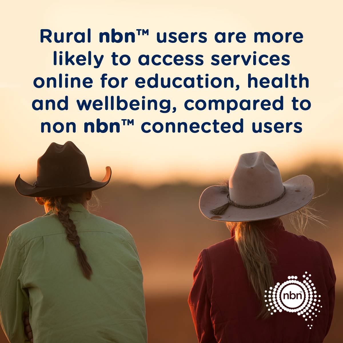 A rural nbn™ user is defined as an individual who has a home internet connection and lives in non-metropolitan suburb/postcode where nbn™ is at least 90% rolled out, this comparison has been made with individual who aren’t connected to the nbn™ network.