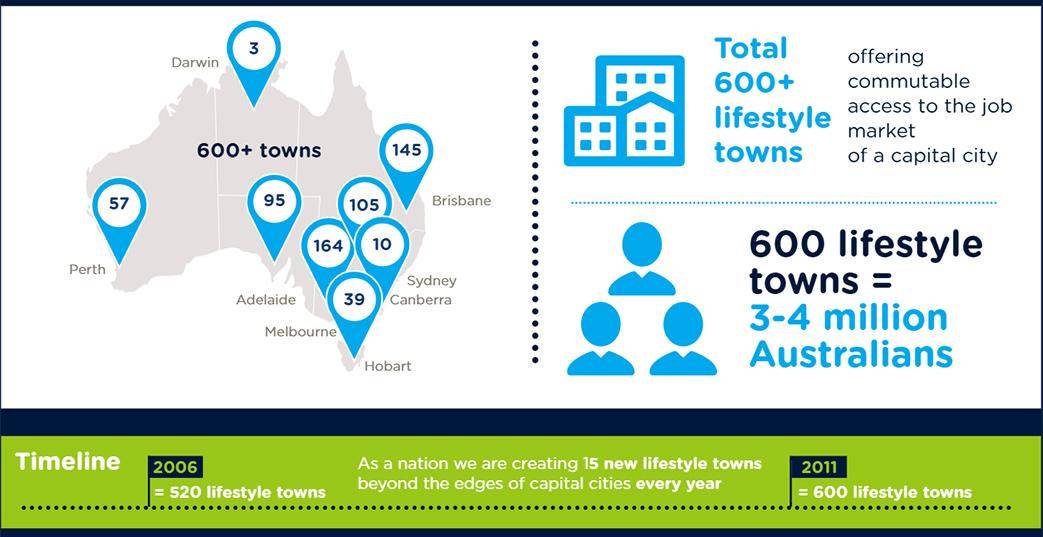 In Victoria, there are more than 160 lifestyle towns within Melbourne’s two-hour radius, over 140 in Queensland, 50 in W.A and 80 in S.A.