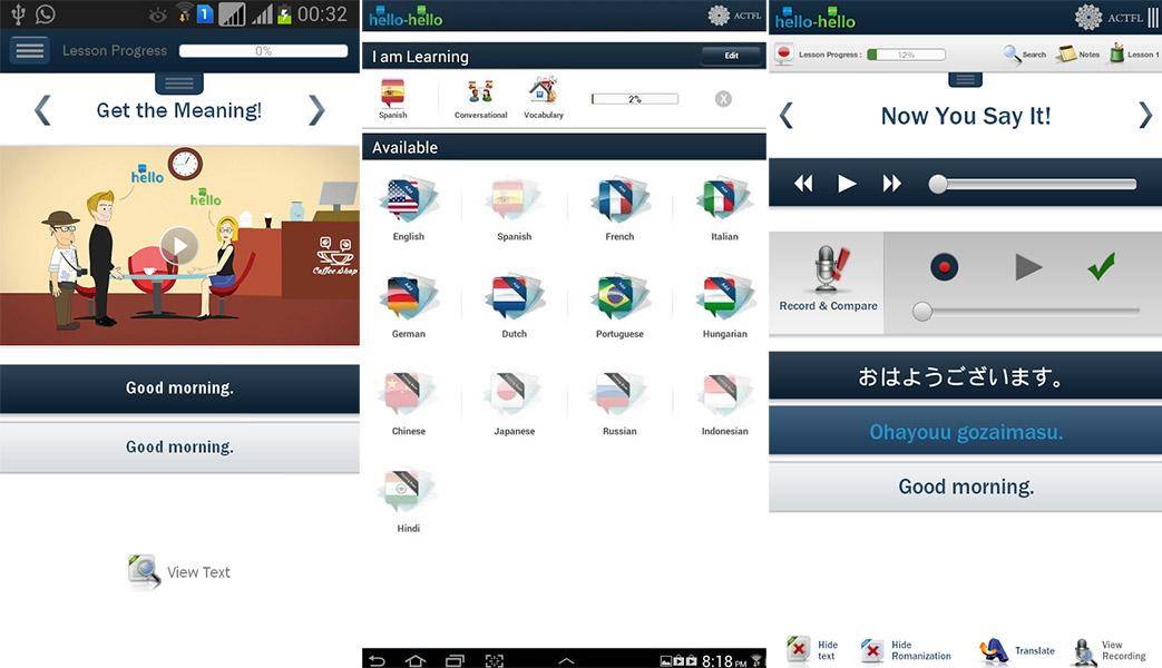Hello-Hello teaches you a new language through reading, listening and speaking exercises.