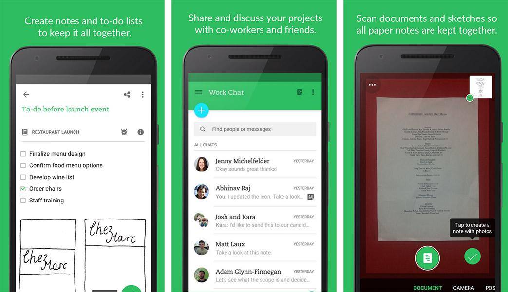 Evernote’s handy functions include creating lists that multiple people can collaborate on, chatting in real time, scanning in documents like receipts and pdfs that you can search for later and clipping pages from the web to share with the people who need to see them.
