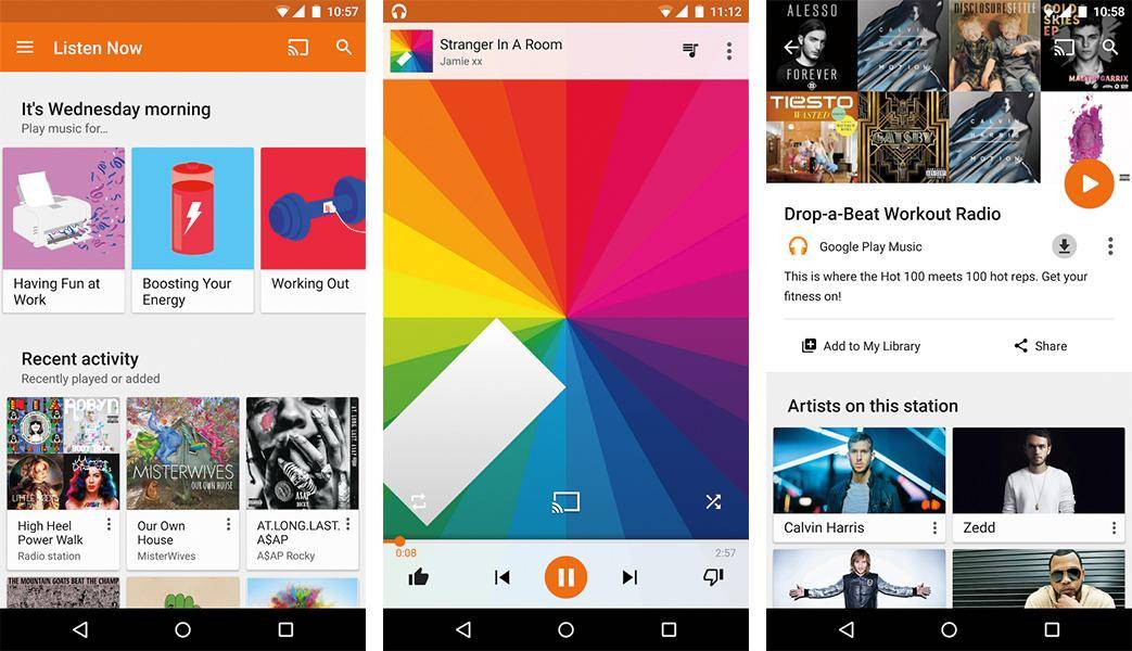 Google Play Music makes recommendations based on your listening preferences and allows you to custom make your own radio stations. You can also download songs to listen to when you’re not online – handy for the times you want to listen but don’t have a lot of data left for the month.