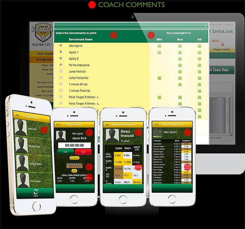 The Match Tracker function allows the coach to record game comments, scores, and statistics, then report findings back to the players to help target areas of improvement for the next training session.