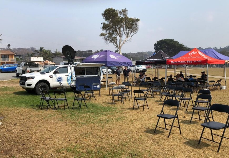 In addition to the nbn™ Sky Muster™ satellite dishes installed at 14 evacuation centres in NSW and Victoria, which are currently offering free Wi-Fi, an nbn™ Road Muster truck is available at the Batemans Bay Evacuation Centre providing free Wi-Fi and a mobile device charging station. A second Road Muster truck is now stationed at Malua Bay Surf Club, south of Batemans Bay.