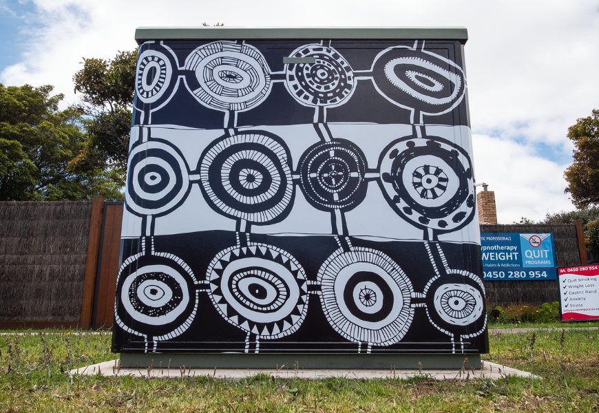 In collaboration with the Mornington Peninsula Shire, 16 nbn™ nodes were recently ‘wrapped’ in unique designs created by local First Peoples artists.