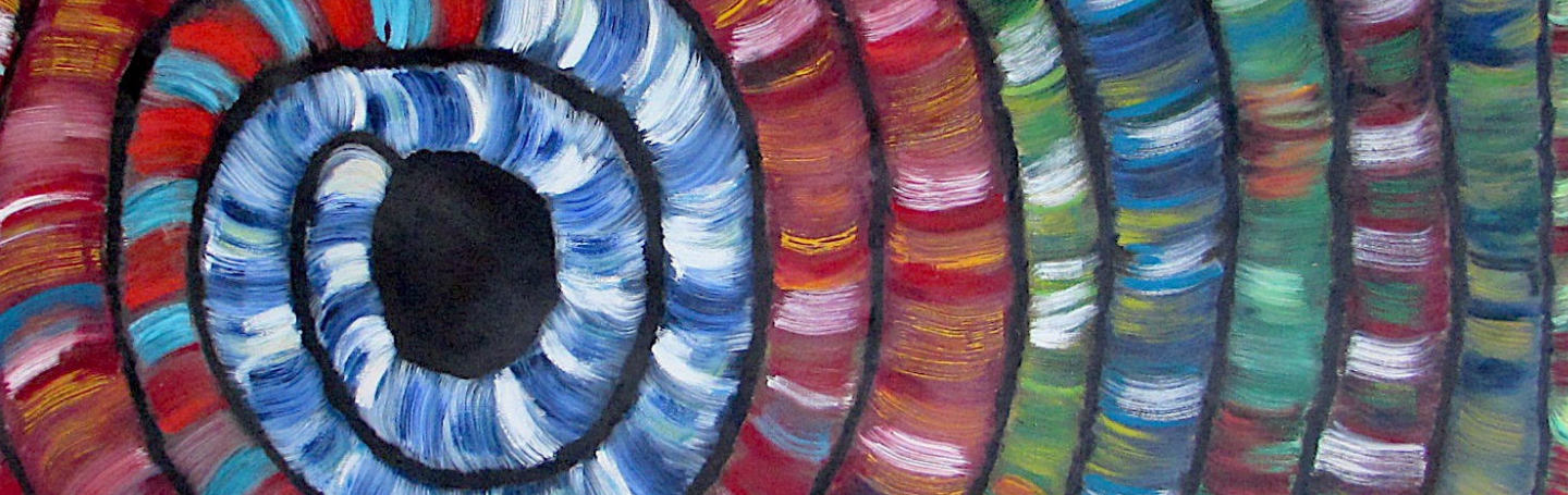 “The painting was inspired by looking at the bottom of woven baskets,” says Christine.