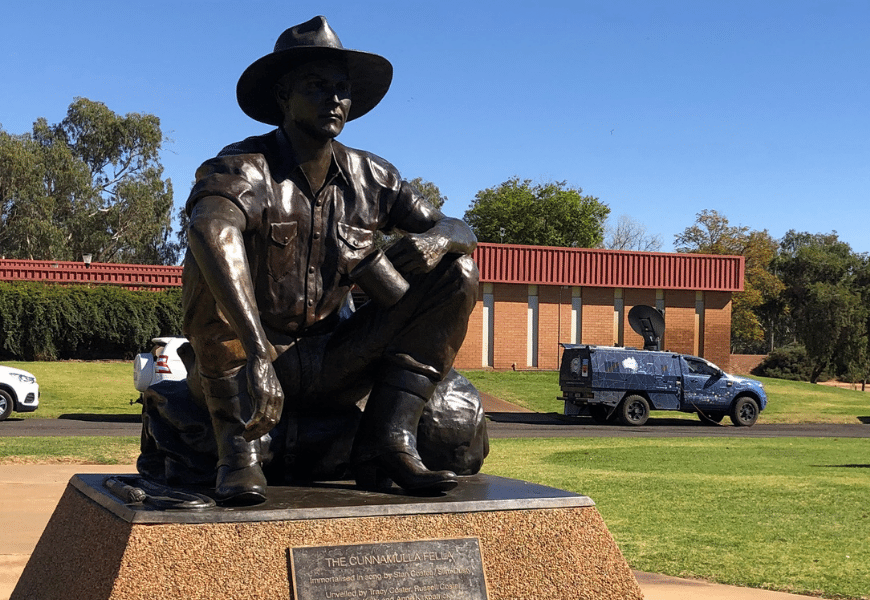 The main setting for Henry Lawson's short story, The Hypnotised Township, Cunnamulla (Kunja Country) was popularised in the Slim Dusty song, The Cunnamulla Fella, commemorated with a statue in the town centre.