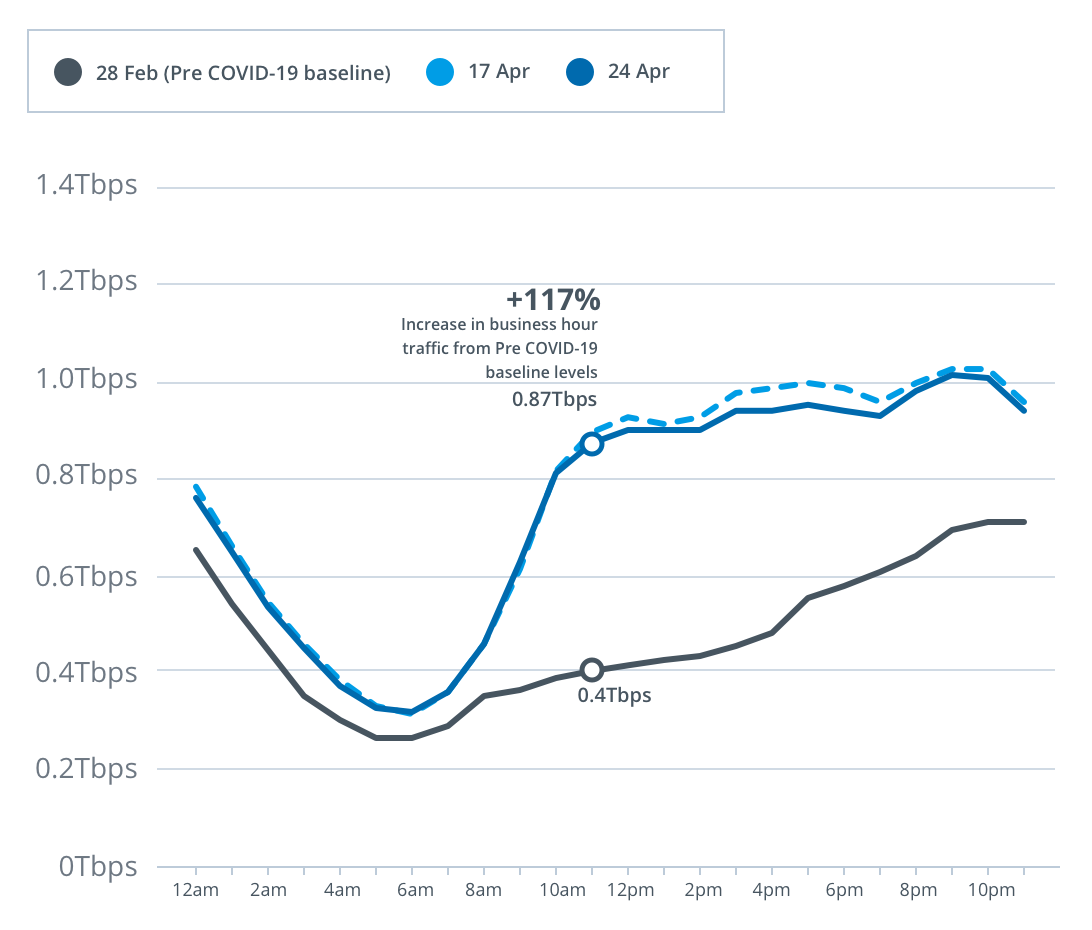 With more people working, studying and generally spending more time at home streaming content, we are seeing a change in the profile of data traffic on our network, with increasing residential usage of the network throughout the day and in the busy hours (7-11pm).
