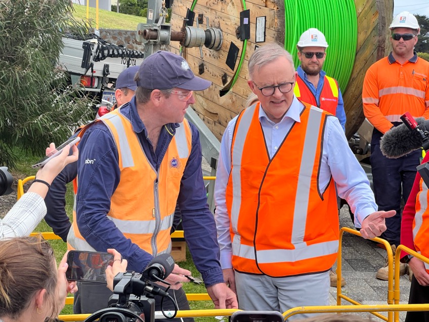 Nathan Davies, Field Engineer at nbn, with The Hon Anthony Albanese MP, Prime Minister of Australia, in Albany, Western Australia