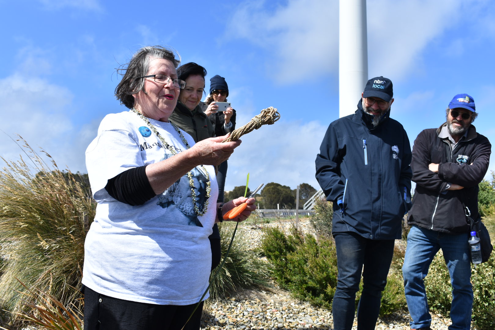 Held at the Tebrakunna Visitors Centre Little Musselroe Bay, located at the Musselroe Windfarm, Aunty Patsy and Her Excellency spoke of Mannalargenna’s courage and love for his people that saw him accept exile to save their lives.