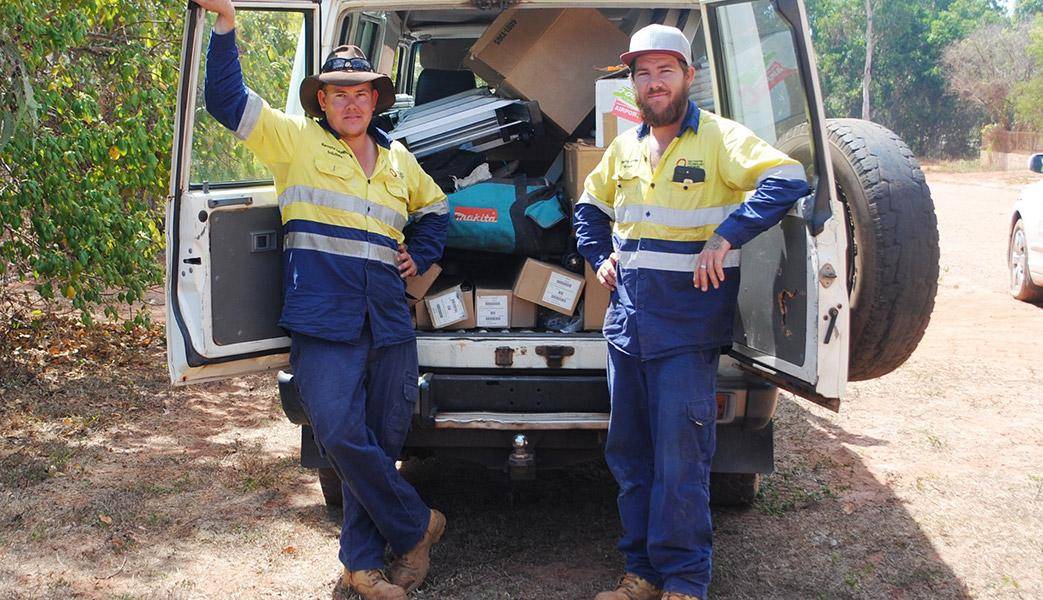 While Brian and Alex have flown in from Darwin, as is often the case when operating in such remote locations, all their tools and equipment have been shipped in by barge a week ahead of their arrival.