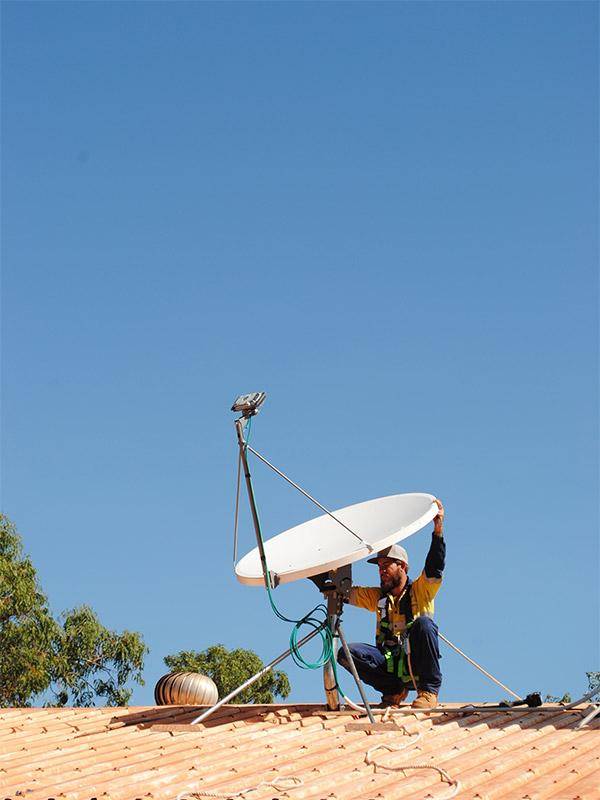 As Alex hauls the satellite dish onto the roof, Omar explains the reason why there are different sized dishes ranging from 80cm to a whopping 180cm and the importance of choosing the correct one in remote areas such as Arnhem Land.