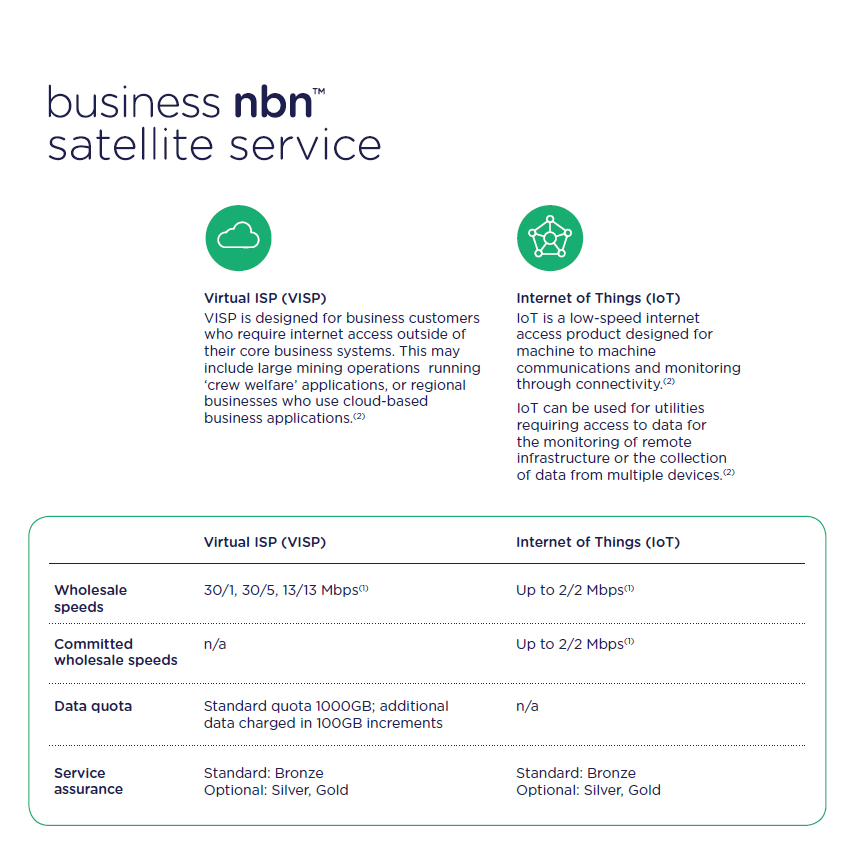 Accordingly, the first wholesale business nbn™ Satellite Service products available focus on remote business needs for high-data capacity and IoT.