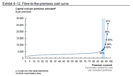 The original 2010 nbn Implementation Study contains a graph (p. 207) that shows the costs of a fixed-line connection for the most remote 10% of premises.