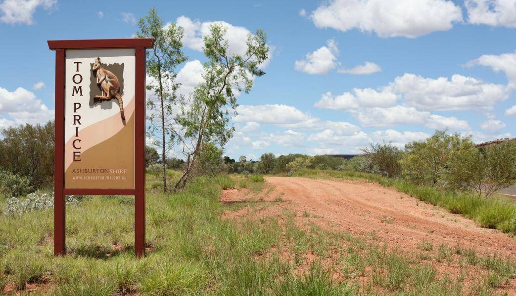After an 80-kilometre drive through a landscape of distant rock formations and purple-red cliffs, we arrive in Tom Price.