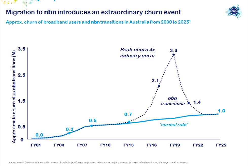 The delivery of the nbn™ access network is providing a once-in-a-generation churn opportunity for the internet providers to win market share, and that is what they are doing as the network is made available to more people.