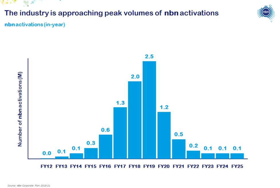 By comparison, the network added 1.1 million active premises between FY11 and FY16 – the incredible scale up certainly causing challenges for the industry.