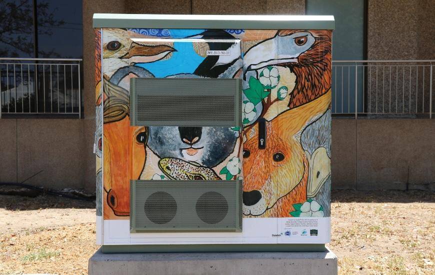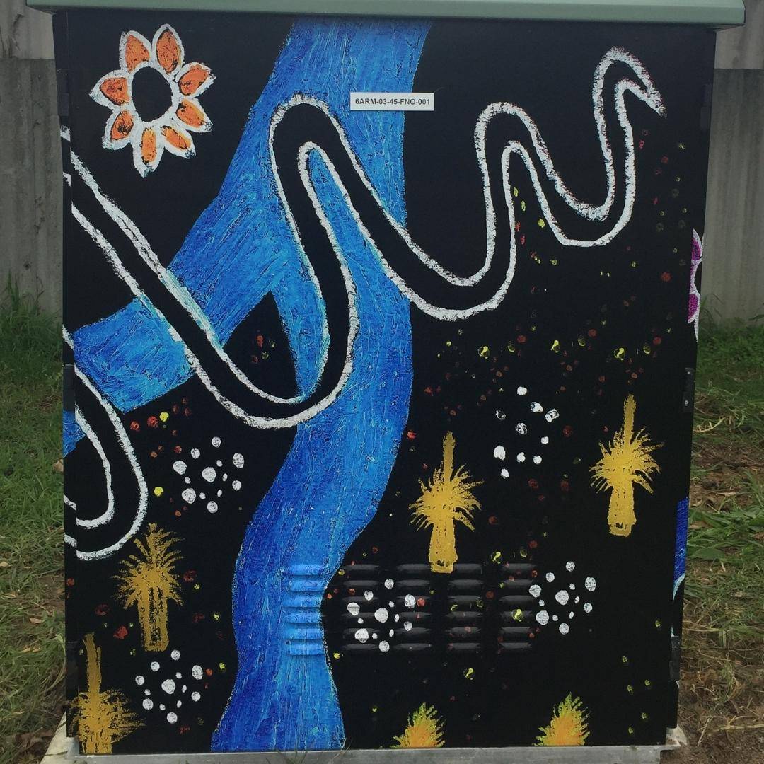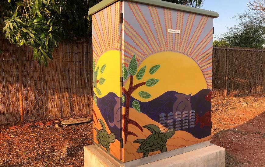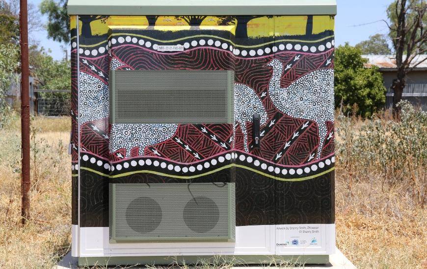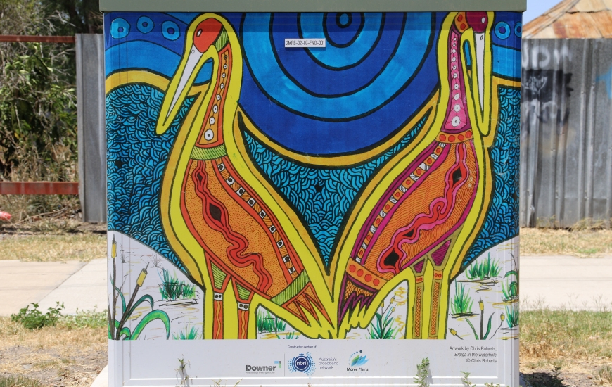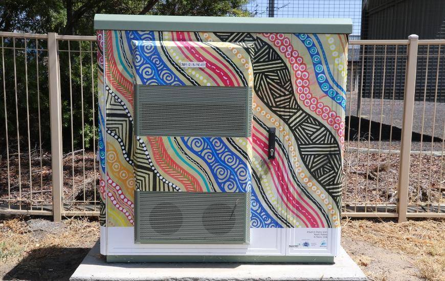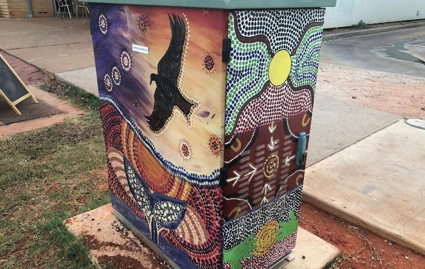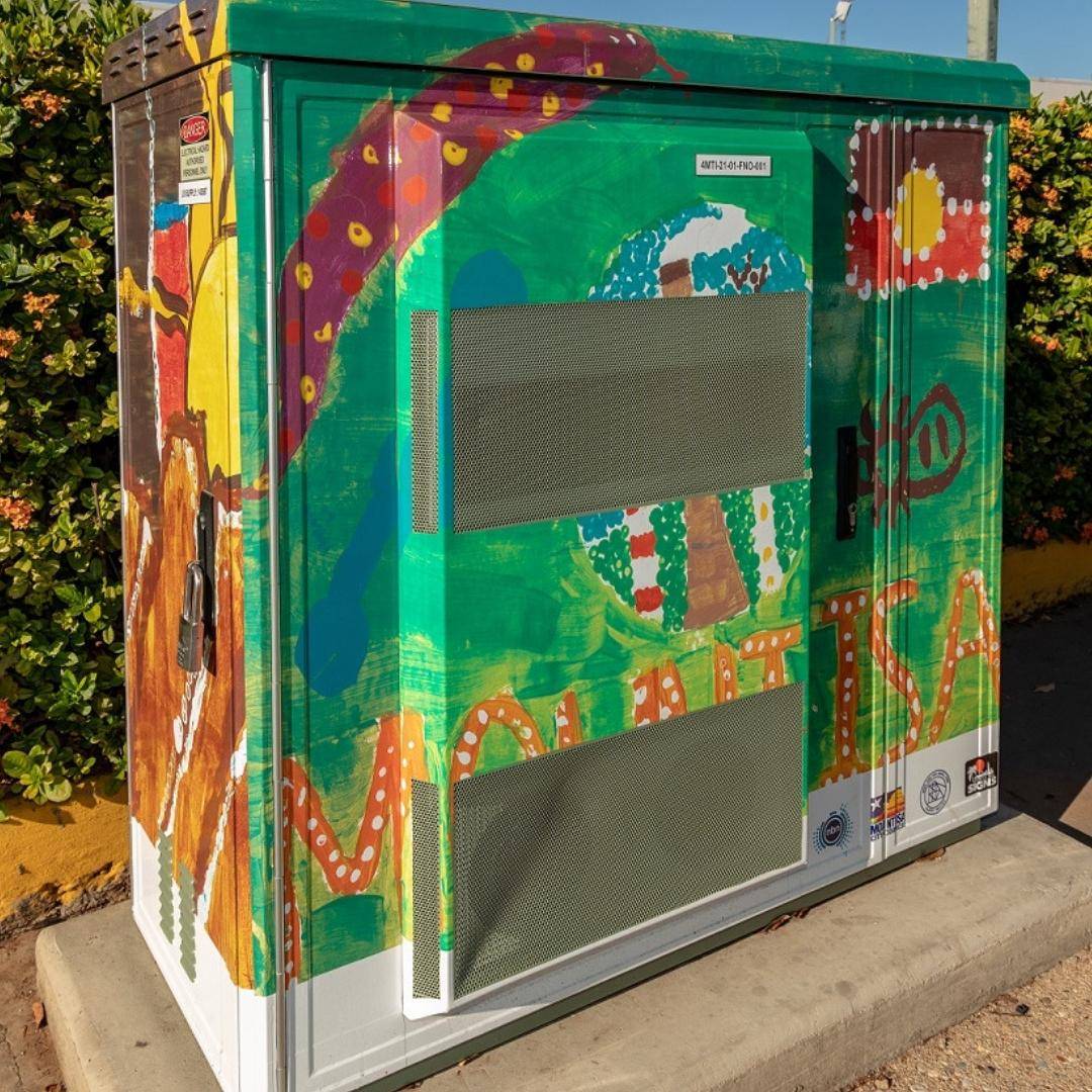 In Mount Isa, you’ll find five art-wrapped nodes in prominent locations including the city centre, police station and airport. The brainchild of NBN Co’s field engineer in town, Brent Sheppard, the nodes feature Indigenous-inspired artworks created by students at Happy Valley State School.