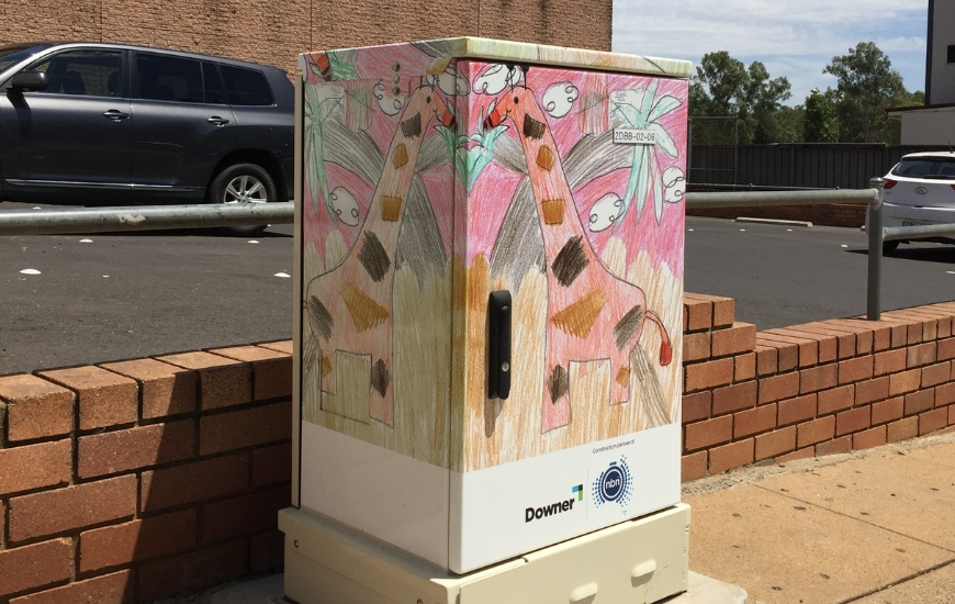 Students from four local schools have – in conjunction with the council, our Delivery Partner Downer, and NBN Co – designed creative art that will wrap around 15 of the town’s nodes. Something of a public art gallery, they will richly represent the culture of their community.