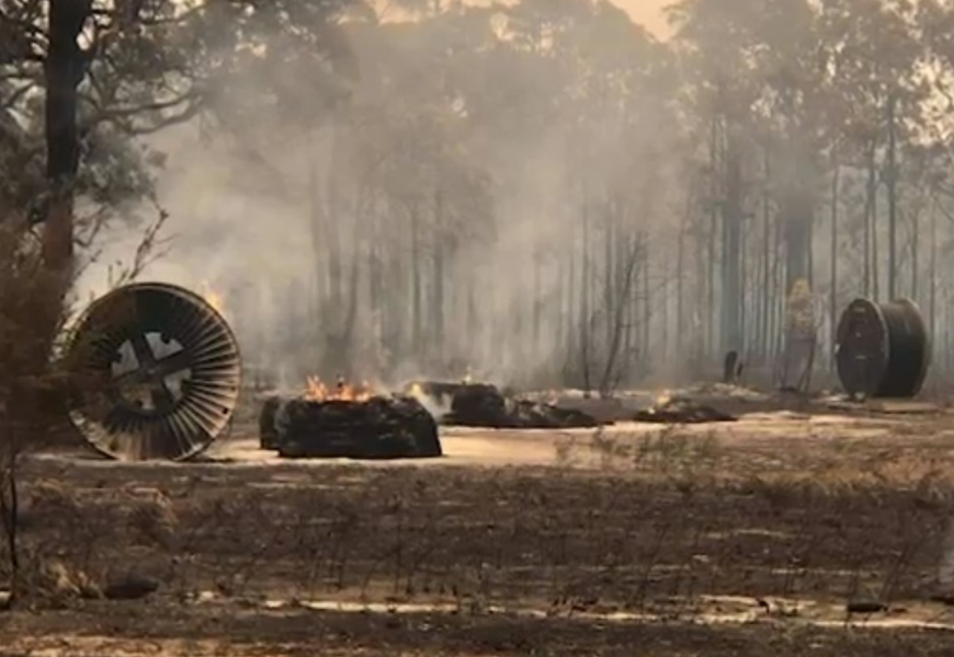 More than 34km of already-installed overhead cable suffered catastrophic bushfire damage, while spools of yet-to-be deployed fibre, equipment and tools were destroyed at nbn’s nearby hardstand facility.