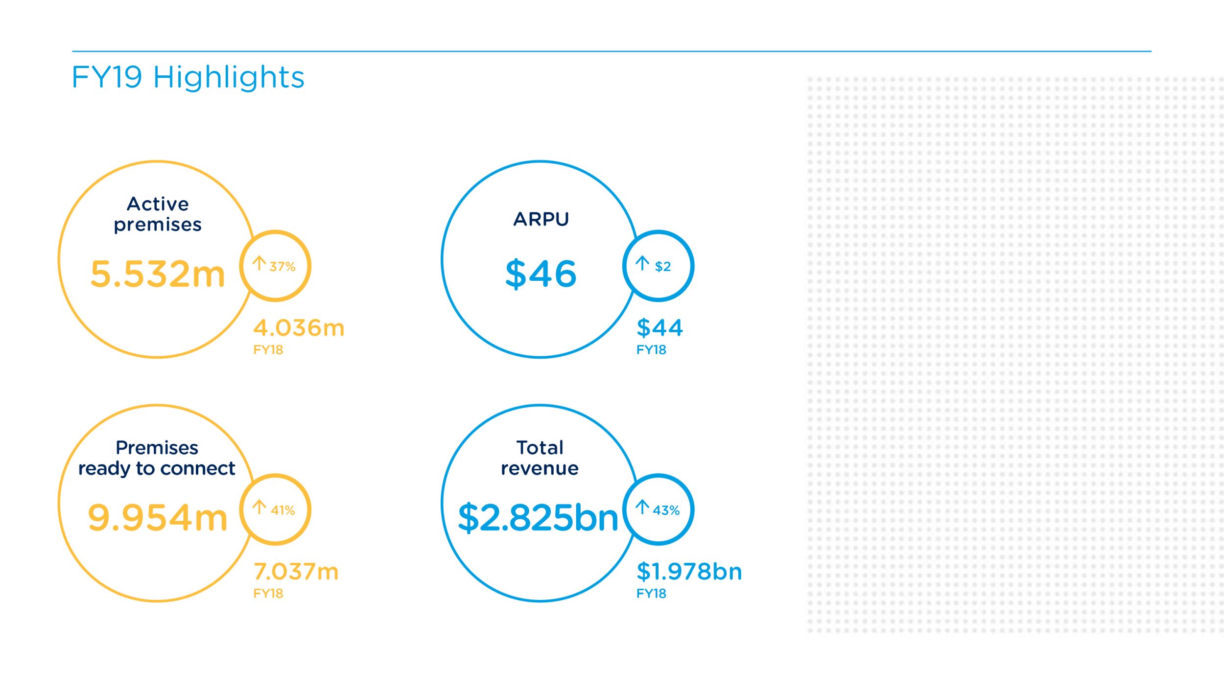 Revenue growth was underpinned by a significant jump in blended Average Revenue Per User (ARPU), which increased to $46 a month, compared to $44 just twelve months ago. There were three main drivers of that ARPU increase in FY19: customer migration to higher speed plans, increased data consumption, and strong growth in our business segment.