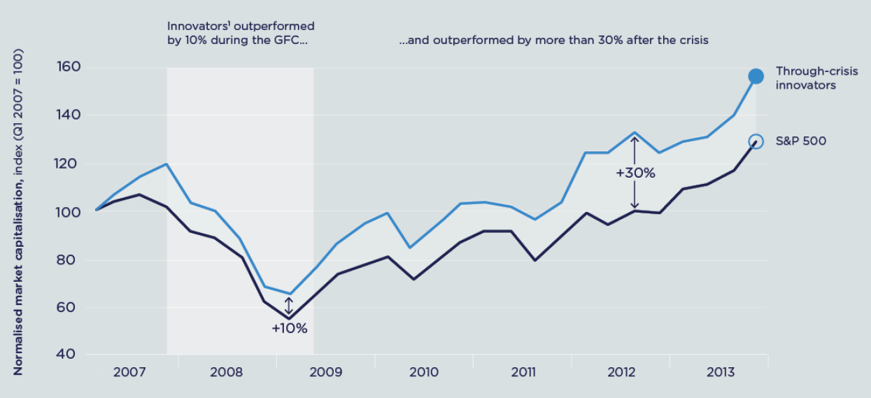 Companies that invested in innovation during the GFC outperformed peers during the recovery