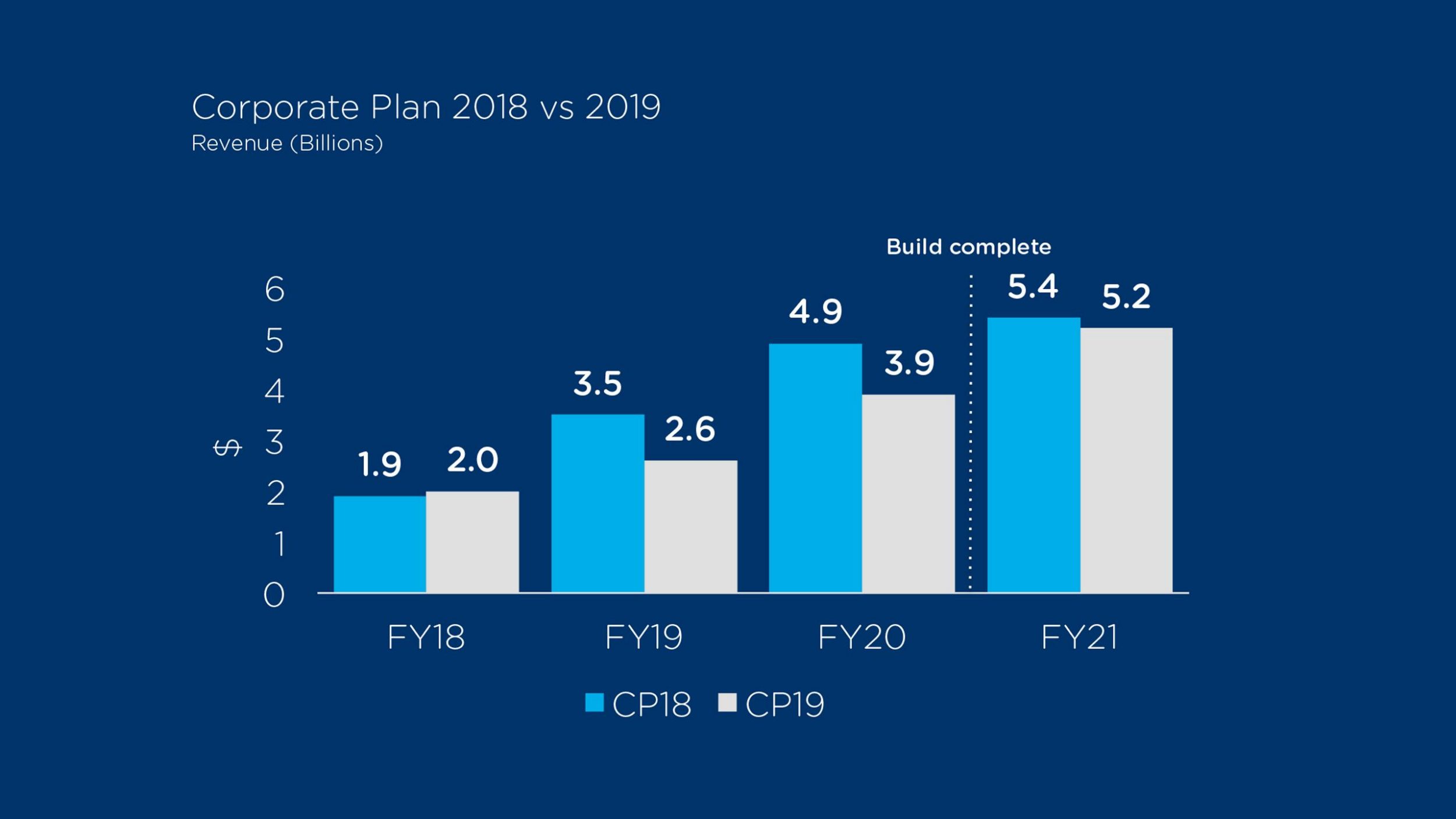 The HFC optimisation program and new wholesale pricing bundles will have an impact on short term revenue growth with revenue now expected to grow from $2.0 billion in FY18 to $3.9 billion by FY20. However, we still anticipate achieving revenue of $5.2 billion in FY21.