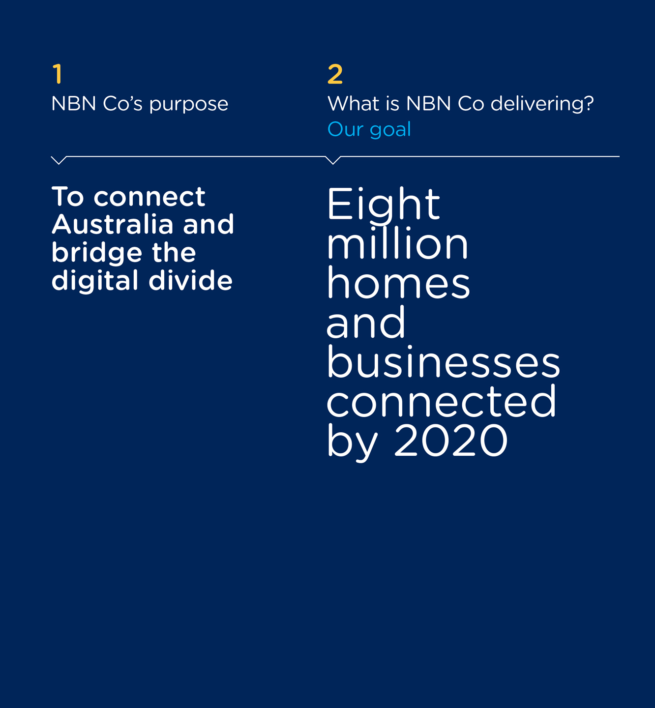 By 2020, we forecast the build to be complete and eight million premises activated by the nbn™ access network.