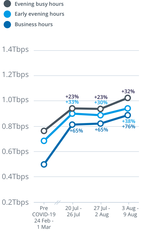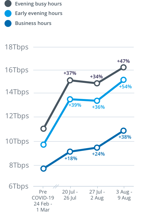 • Weekly download throughput peak of 16.2 Terabits per second (Tbps) recorded on Wednesday, 5 August during the evening busy hours
