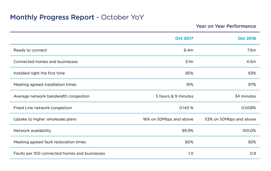 NBN Co today released its latest monthly progress report for October, demonstrating a continued focus on helping to improve end user customer experience for those connected to the nbn™ access network.¹