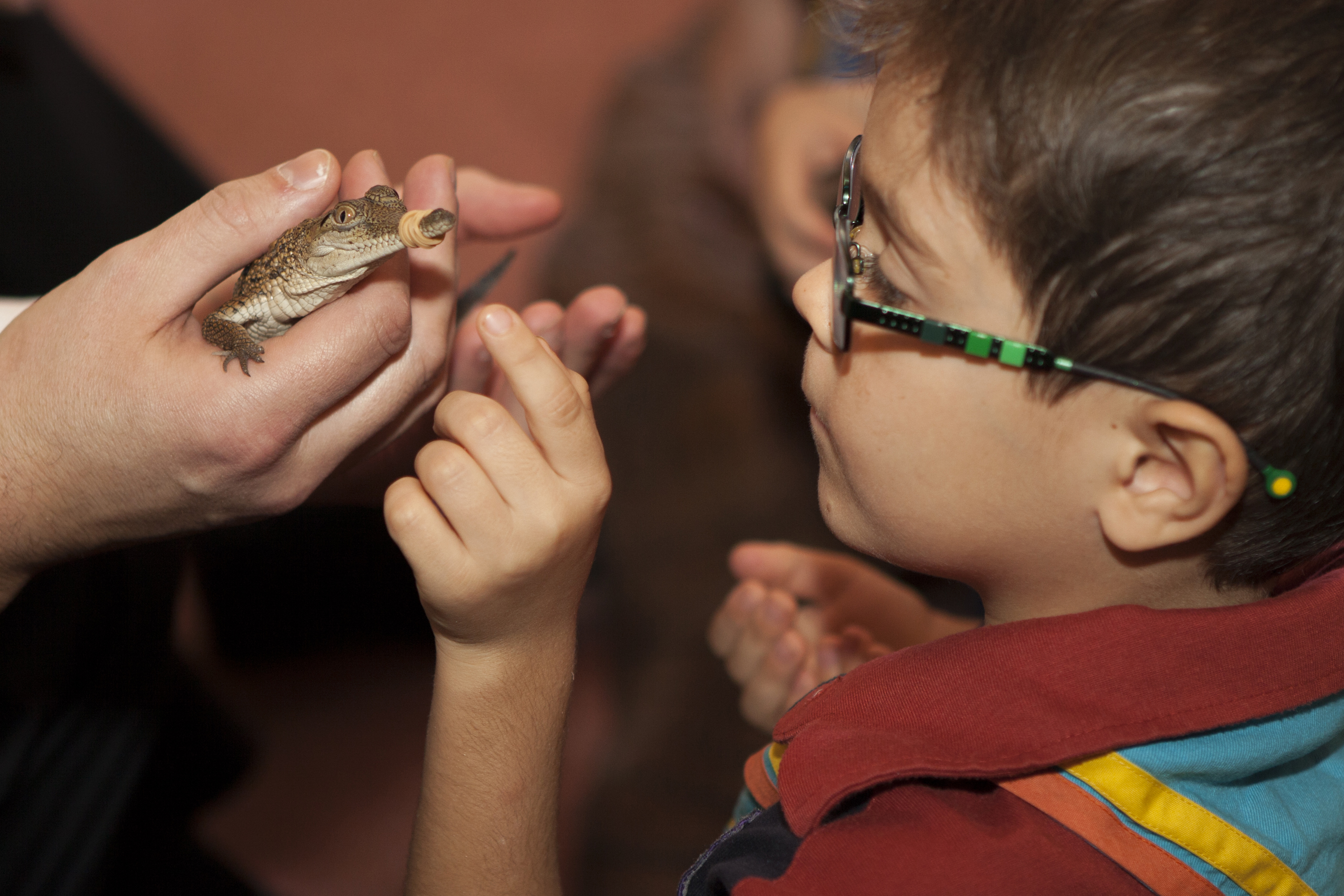 Photo: Young scout gets up close to small crocodile Download (JPEG 3 MB)