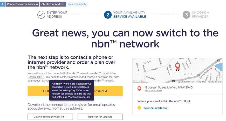 Example updates to the address checker function on the nbn website