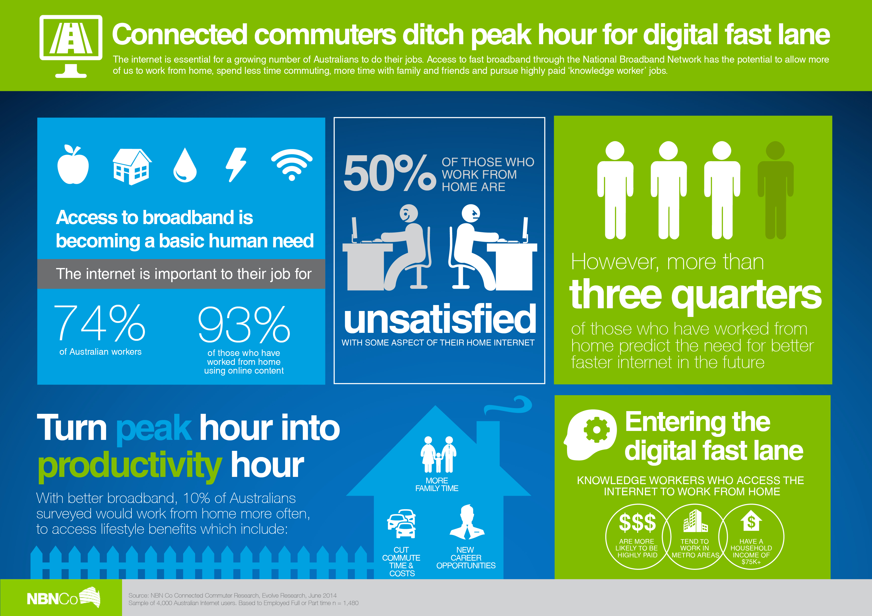- Work, life balance – working from home (JPG - 2.5MB) becomes a real option for many, with a network that gives access to fast internet services to everyone, whether for personal or business needs. Access to your work network will depend on factors outside our control like your organisation’s IT policy and infrastructure.
