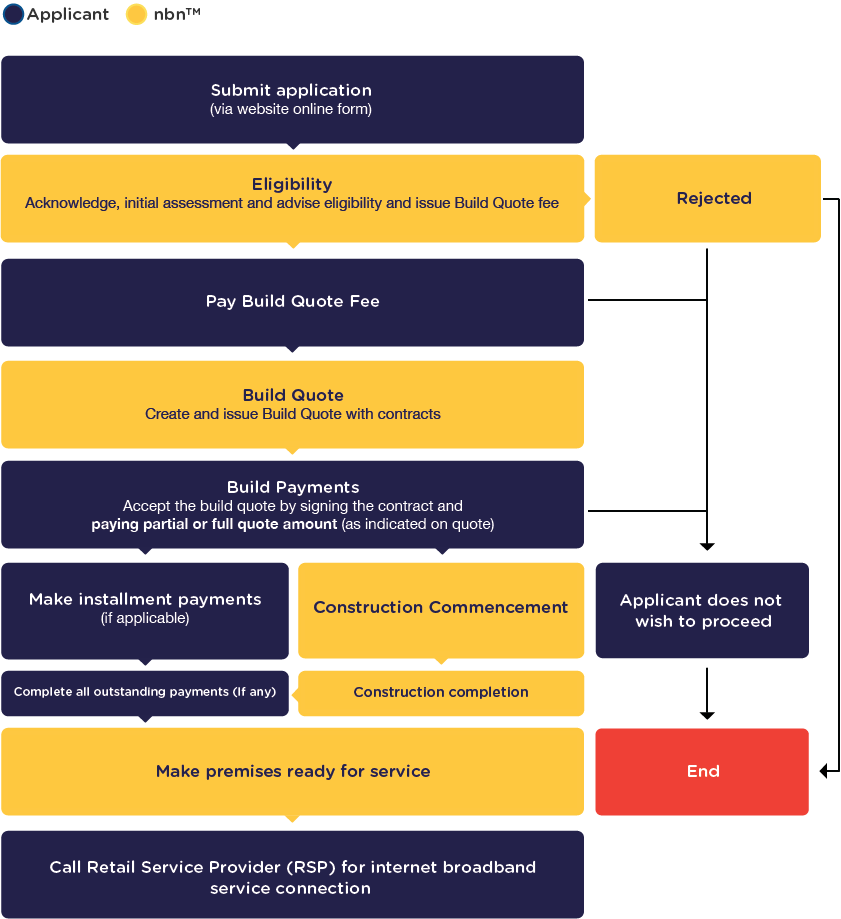 If the applicant wishes to proceed, a Build Quote will be paid. Following this payment, nbn will engage with contractors to develop a more detailed design, confirm availability of infrastructure, as well as provide a final Build Quote.
