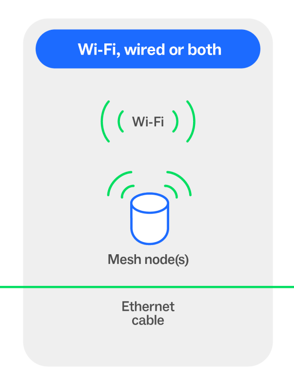 A wired connection means using an Ethernet cable, also known as a Local Area Network (LAN) cable, to connect your devices directly to your Wi-Fi router, or adding a wired connection between your mesh network nodes.
