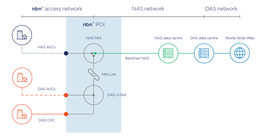 • The NAS will order an “NNI Link” from nbn with associated properties as agreed between the NAS and DAS.